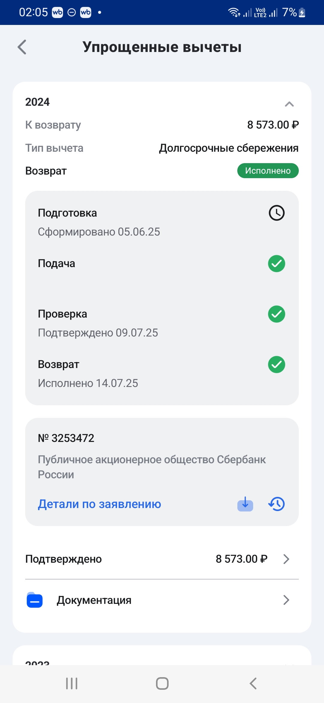 У меня автоматом упрощённый способ получения вычета стал доступен и отобразился на главном экране. Сбер передал данные ещё зимой, тогда же я подавала заявление на применение налоговых вычетов на дсг для счета, оформленного до 31 декабря 23 года, сбер уведомил о необходимости. Работодатель весной предоставил данные. Вычет появился только в июле. Налоговая сама автоматом заполнила заявление, я нажала кнопку подписать и автоматом пришли деньги. До этого, если вручную выбирала вычеты, предлагали заполнить декларацию вручную. Не стала заморачиваться